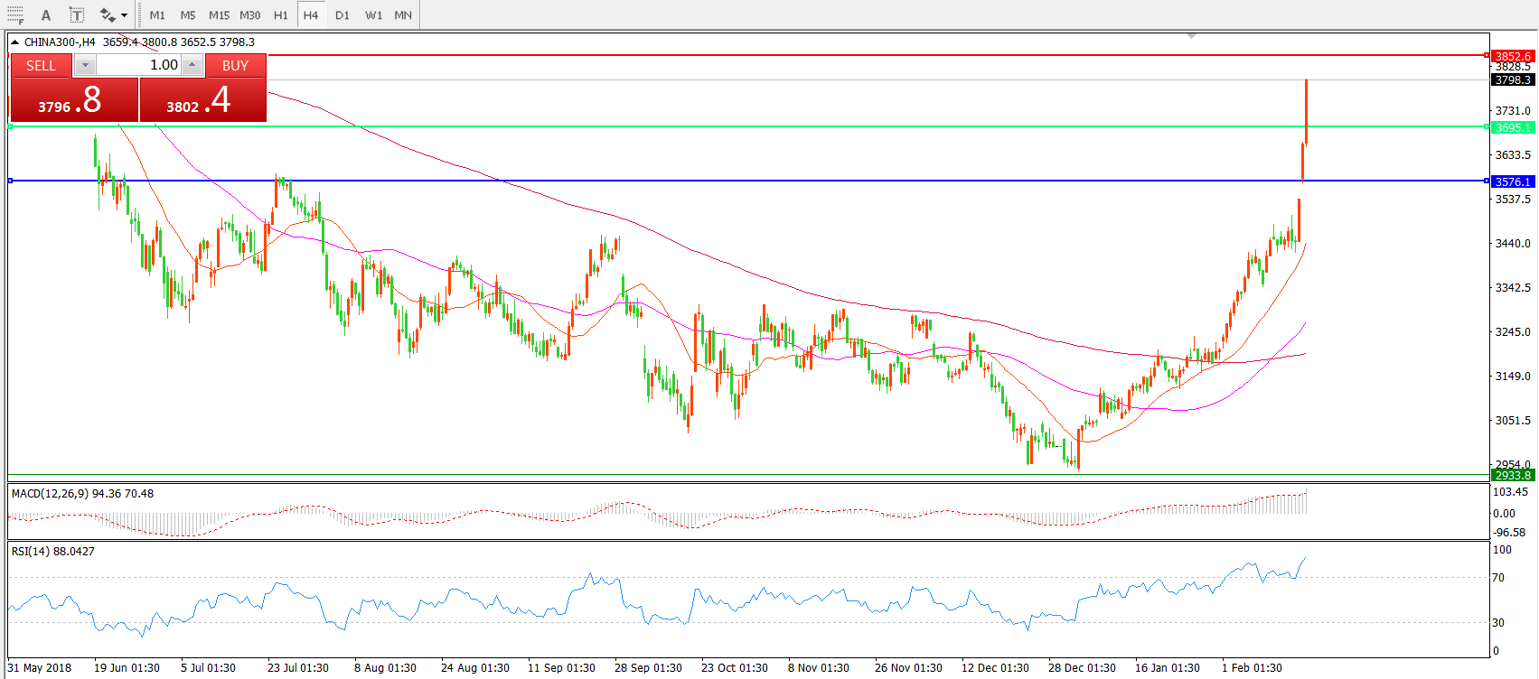 中华指数300CHINA3004小时图