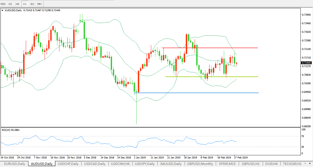技术面简析:日图布林带继续快速收窄,RSI平缓上攻,汇价上攻受压后回落试探布林中轨,中美贸谈不确定性打压商品货币,预计汇价将在布林中轨附近展开整理,等待汇价选择方向。