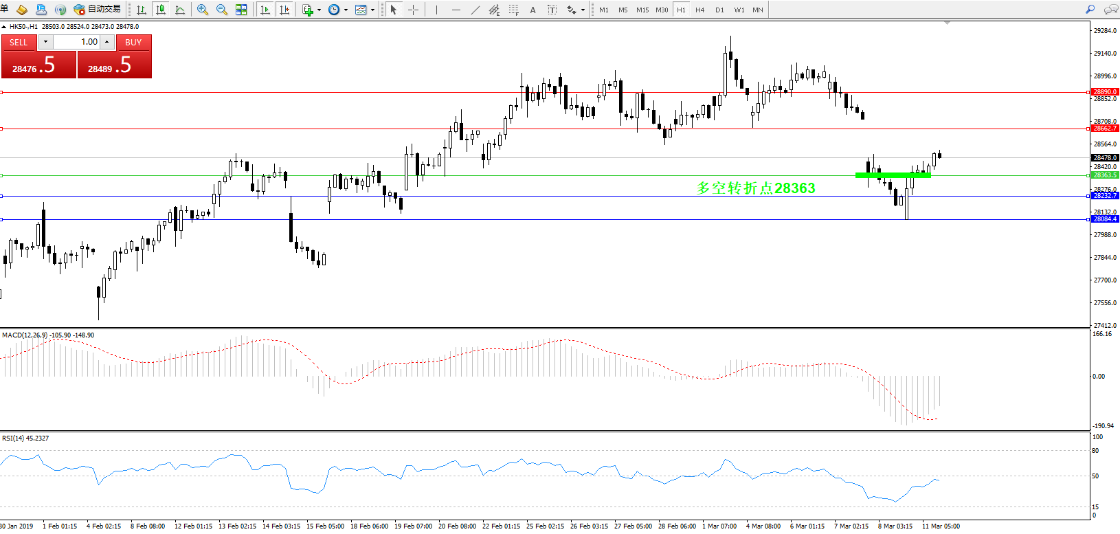受中美贸易利好与中国政策憧憬提振恒指上扬