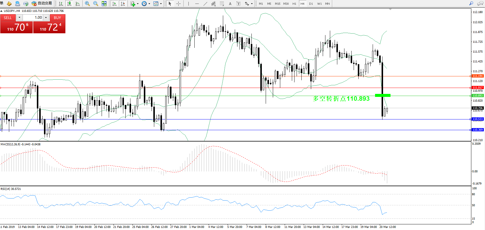 交易策略:110.893下方看跌,目标110.533110.369