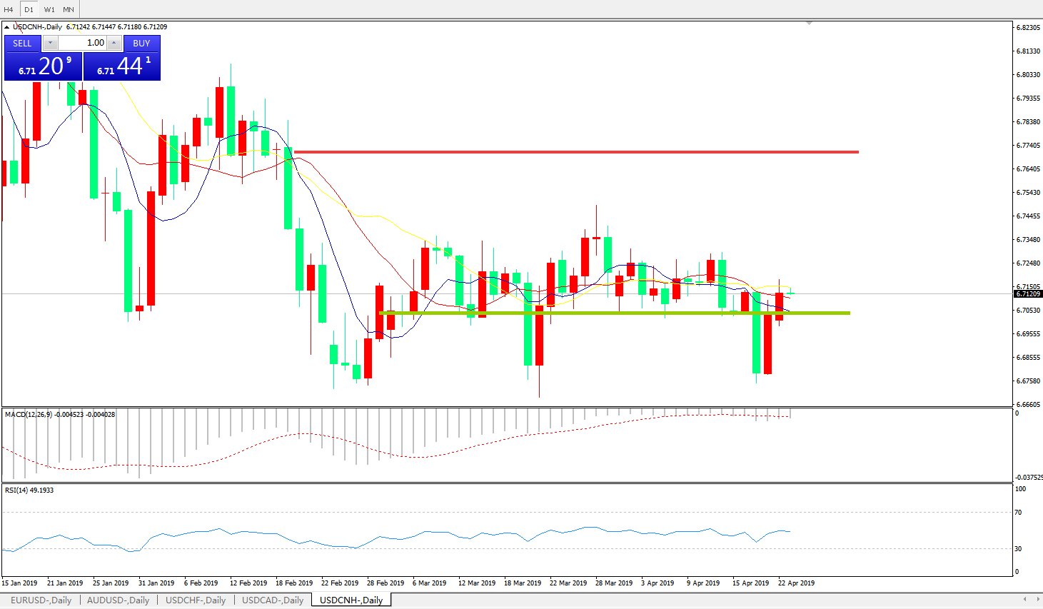 美元兑人民币USDCNH 日线图: