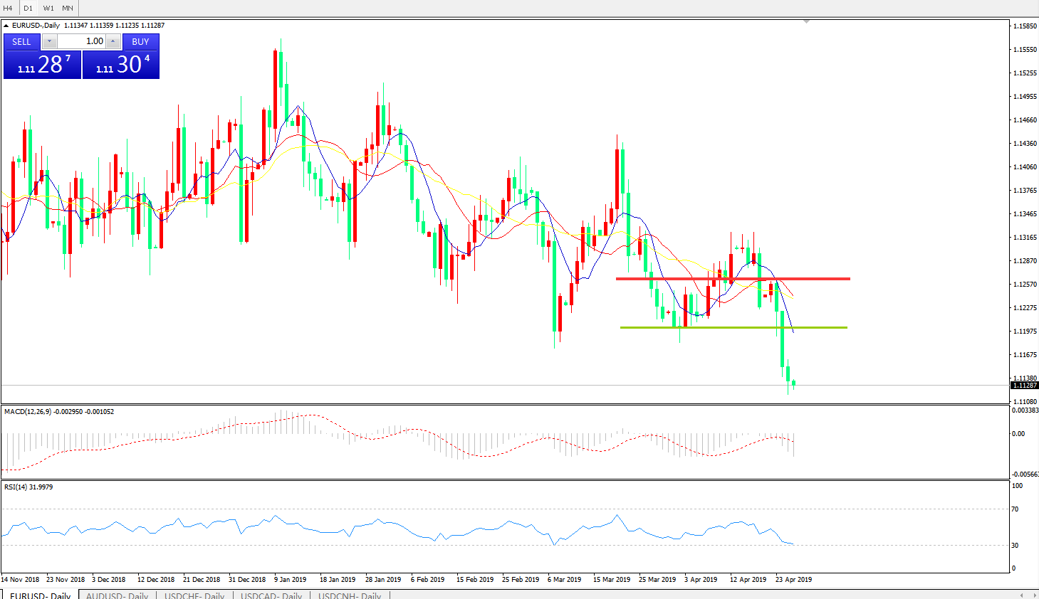 交易策略:在1.1200之下,看跌,目标价位为 1.1100,然后为1 .1030