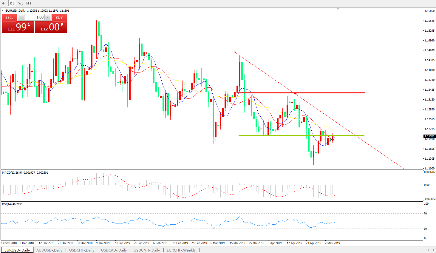 交易策略:在1.1200之下,看跌,目标价位为 1.1100,然后为1 .1030