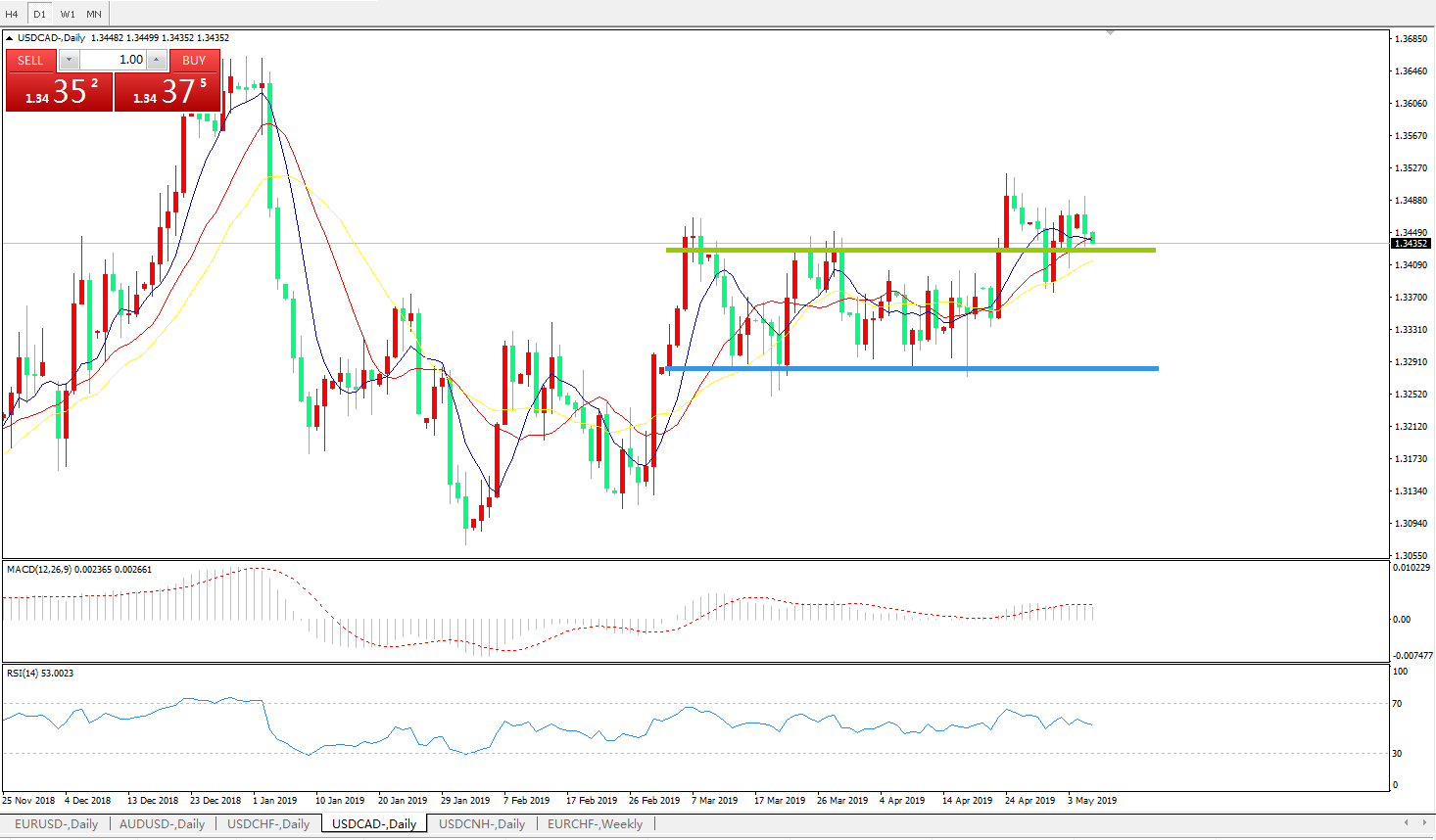 美元兑加元USDCAD 日线图: