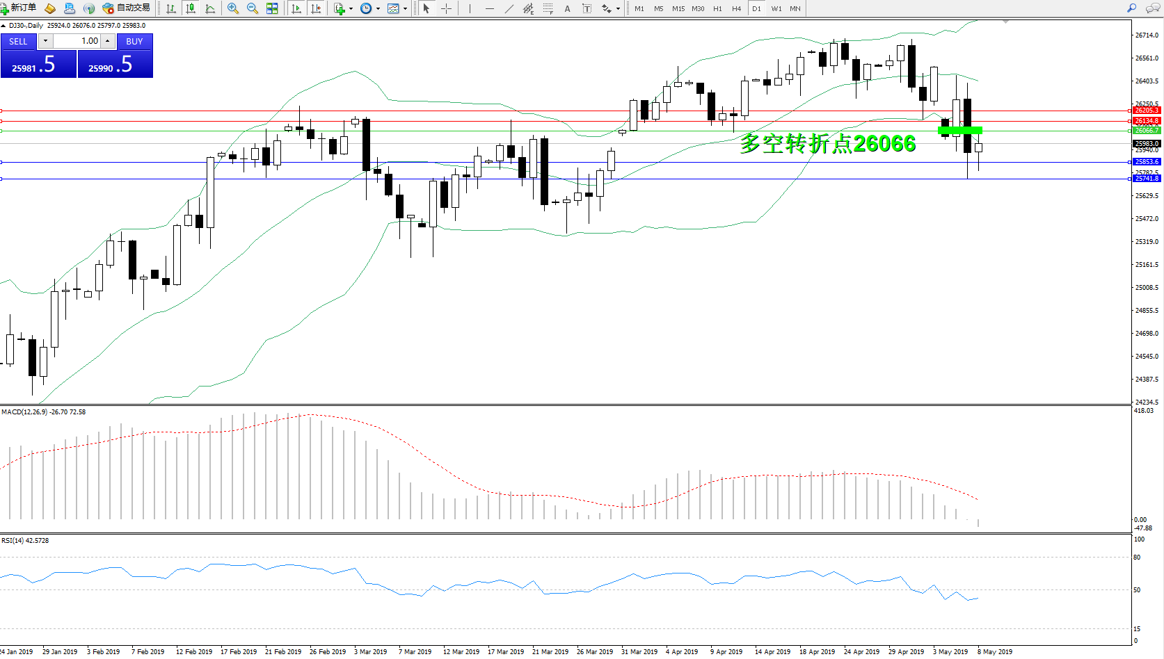交易策略:26066下方看跌,目标25853、25741
