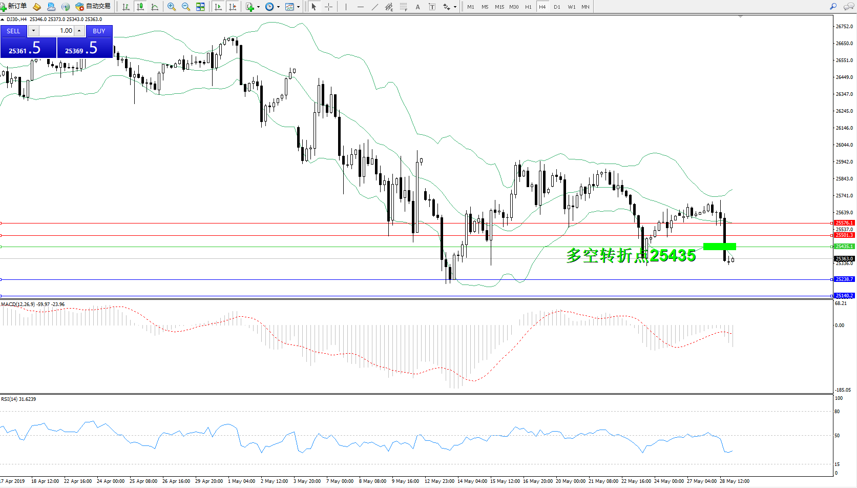 技术点评:空头下行持续,再度跌破布林带下轨短暂整理,有触及前低迹象,MACD指标空头区域再次重挫下行,RSI指标空头区域下行后平移;
