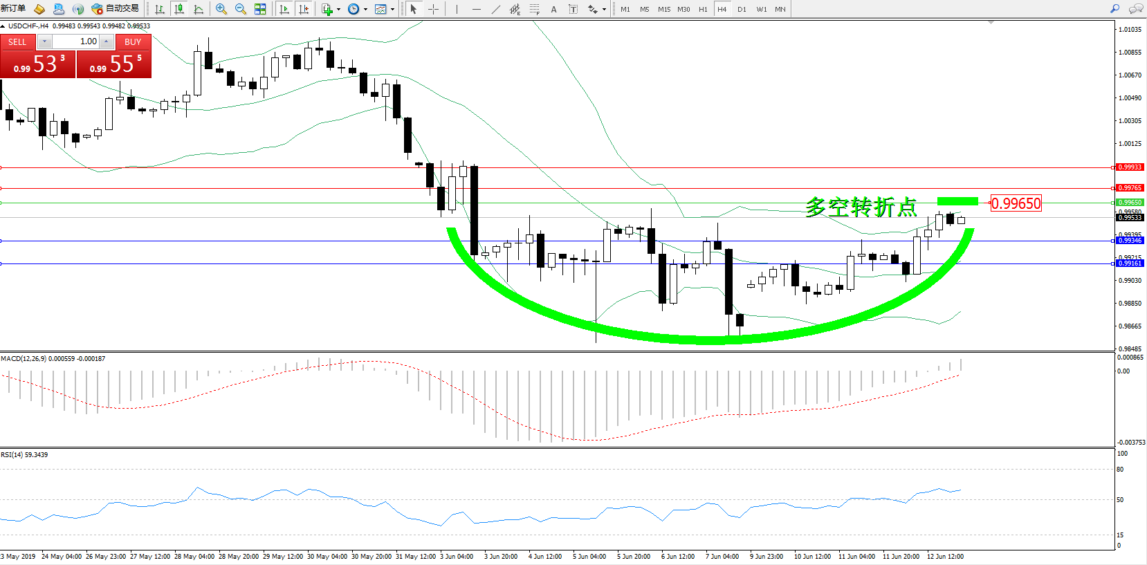 交易策略:0.99650下方看跌,目标0.99346、0.99161