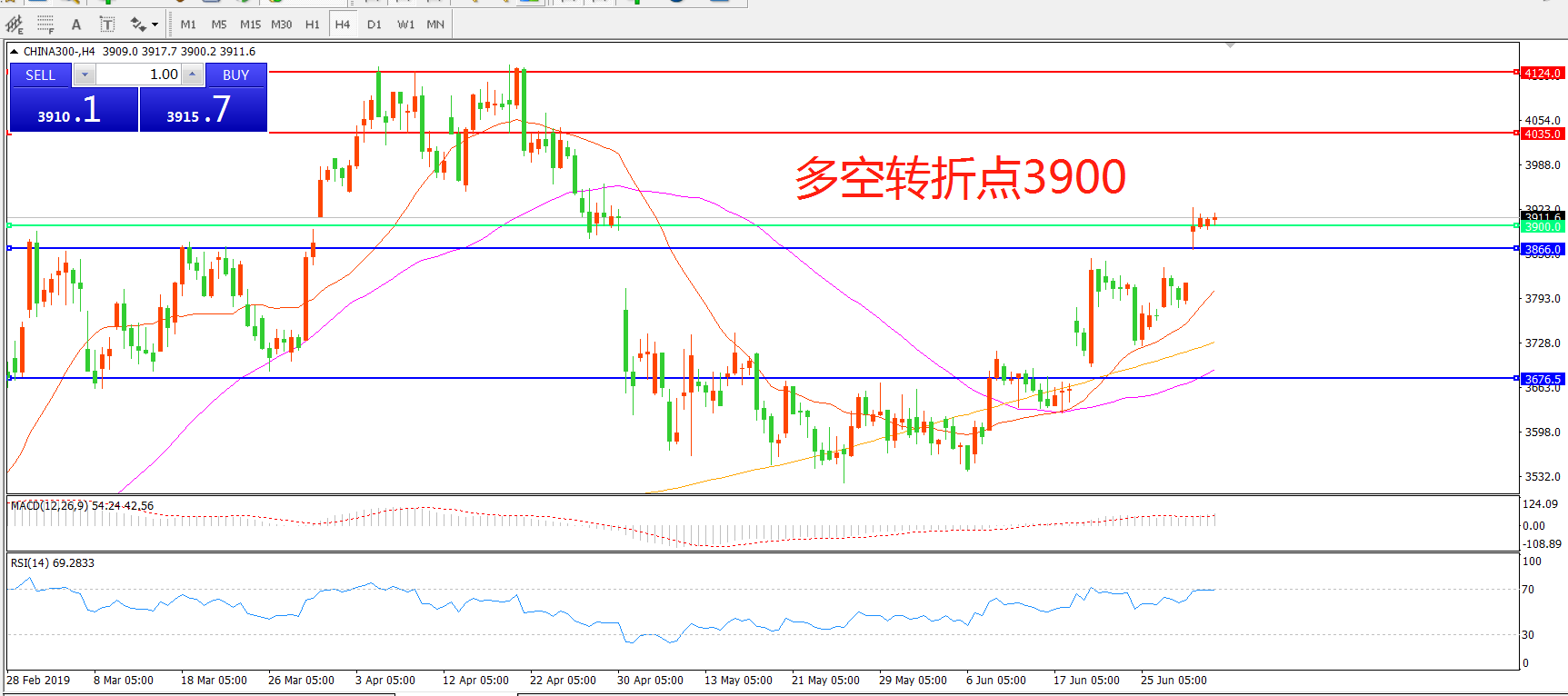 4小时图看,沪深300指数跳空高开后延续上行,之后虽有小幅回落 ,但整体处于均线支撑之上,MACD红柱增加,RSI指标拐头向上,日内延续震荡上行概率较大。