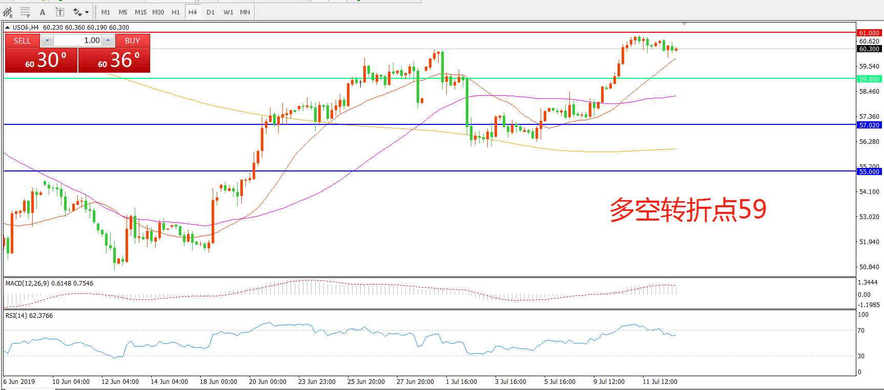 交易策略:在57.00  之上看涨,目标59.00    61.00