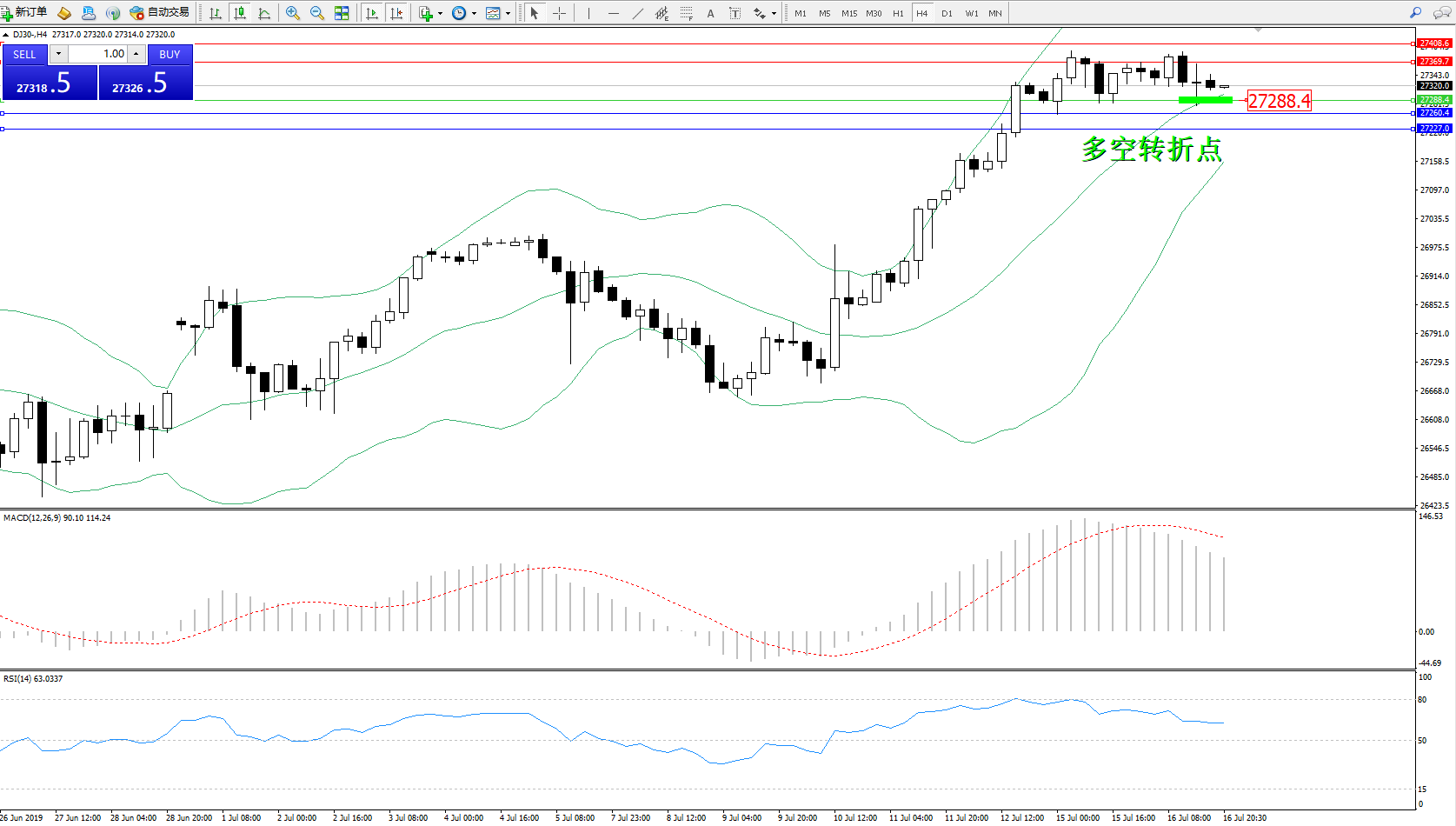 道琼斯指数7月16日(周二)收盘下跌23.50点,跌幅0.09%,报27335.63点。美国6月份零售销售增长0.4%。零售销售对照组强劲增长0.7%,表明二季度实际个人消费支出强劲。美国6月份强劲的零售销售数据支持了美联储主席鲍威尔的观点,即在紧张的劳动力市场支持经济扩张的情况下,消费者支出和财务状况依然健康。市场注意力转移到在美联储本月晚些时候举行政策会议之前一系列美联储官员针对货币政策的评论,市场预计美联储将在本次会议上降息,猜测的焦点在于降息幅度会有多大。