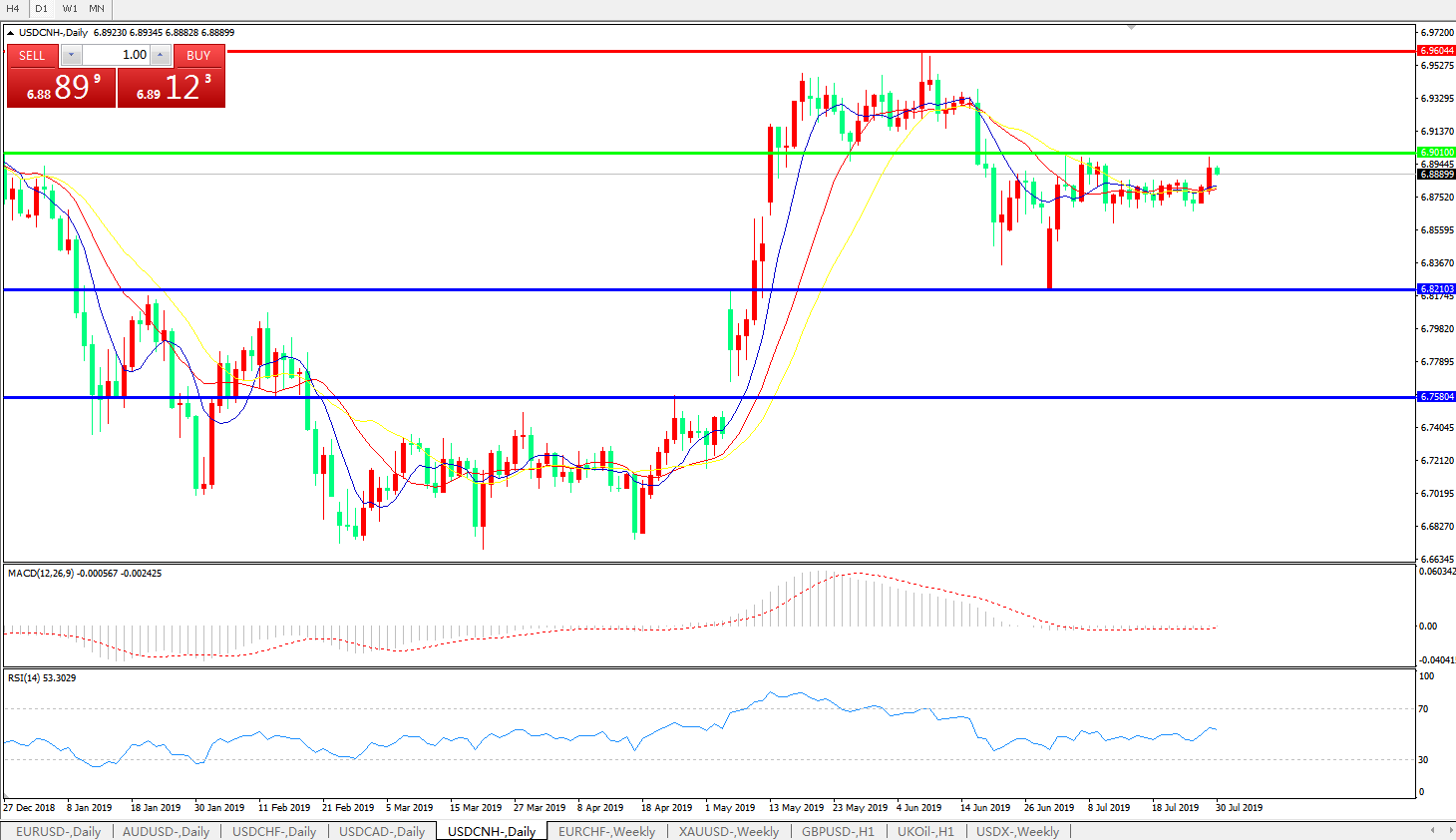 技术面简析:日图均线再度粘合无方向,MACD徘徊在0轴附近且动能柱无明显倾向,RSI维持震荡,行情维持整理态势,预计短期汇价将继续整理修正,中期关注6.9010附近多空转折区域压制是否有效及中美贸易谈判最新进展。