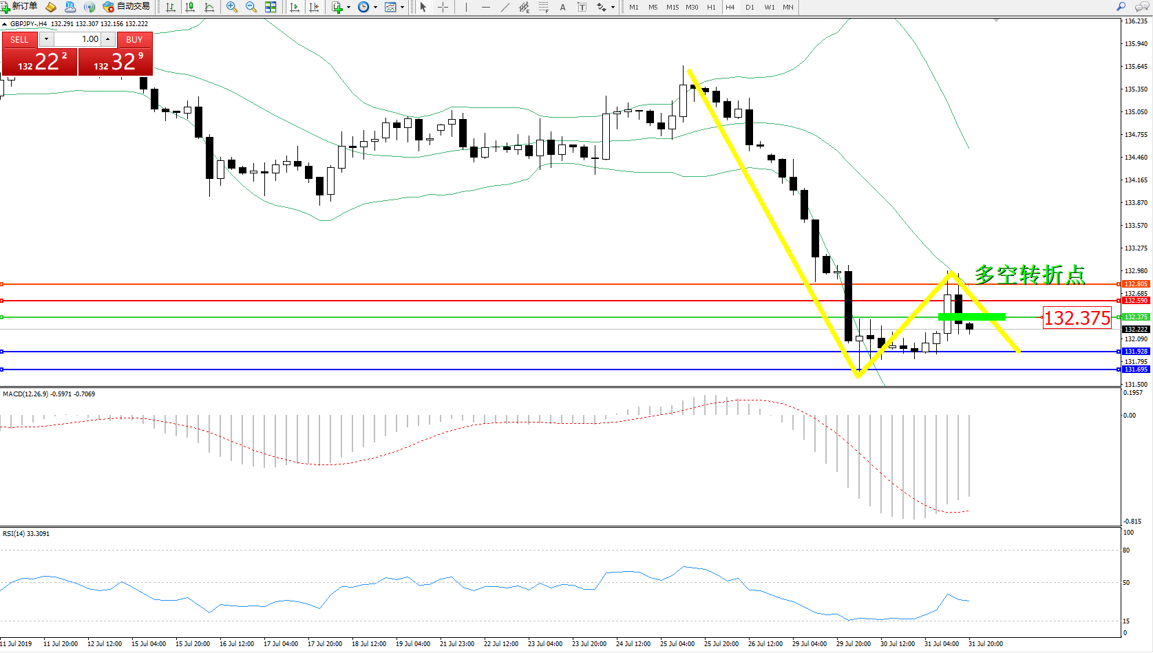 多空转折点:132.375