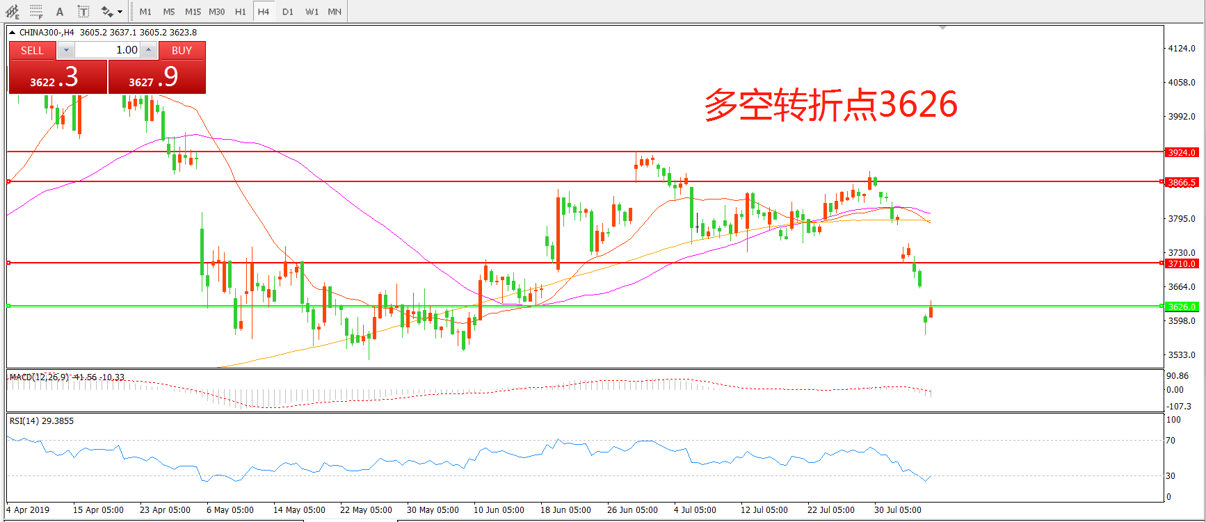 多空转折点:3626.00