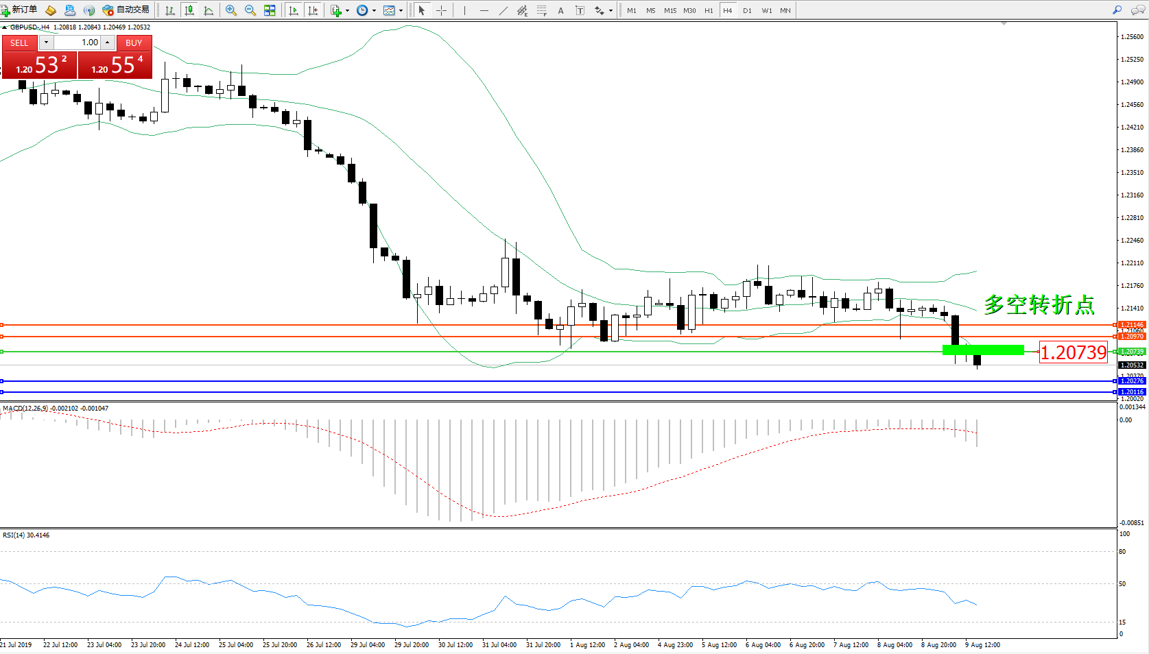 交易策略:1.20739下方看跌,目标1.20276、1.20116