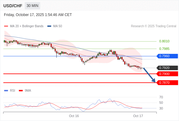 在 0.7960 之下,看跌,目标价位为 0.7900 ,然后为 0.7870 。