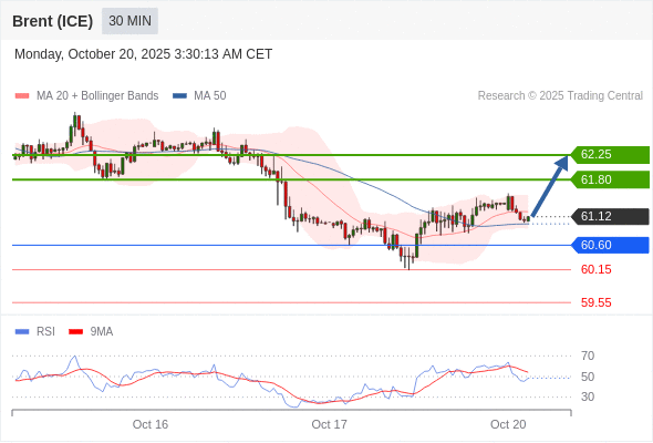 在 60.60 之上,看涨,目标价位为 61.80 ,然后为 62.25 。