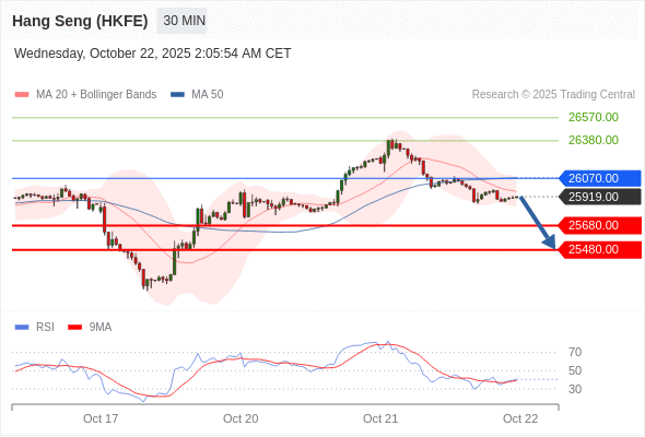 在 26070.00 之下,看跌,目标价位为 25680.00 ,然后为 25480.00 。