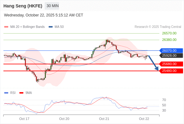 在 26070.00 之下,看跌,目标价位为 25680.00 ,然后为 25480.00 。