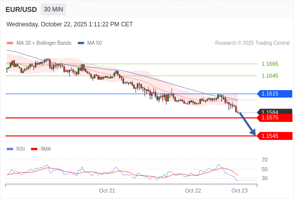 在 1.1615 之下,看跌,目标价位为 1.1575 ,然后为 1.1545 。
