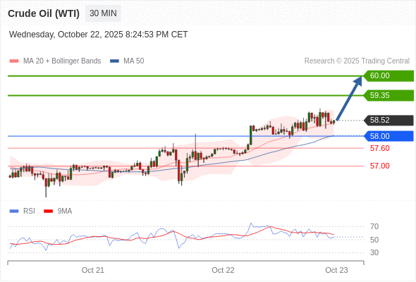 在 58.00 之上,看涨,目标价位为 59.35 ,然后为 60.00 。
