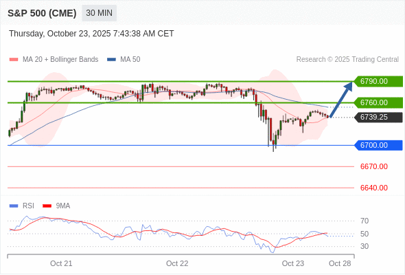 在 6700.00 之上,看涨,目标价位为 6760.00 ,然后为 6790.00 。