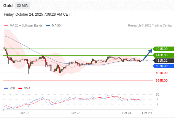 在 4070.00 之上,看涨,目标价位为 4160.00 ,然后为 4215.00 。