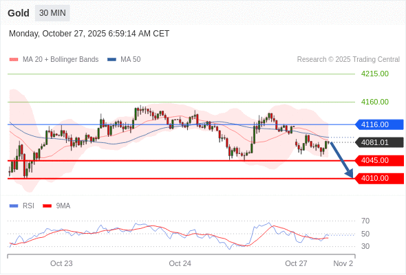 在 4116.00 之下,看跌,目标价位为 4045.00 ,然后为 4010.00 。