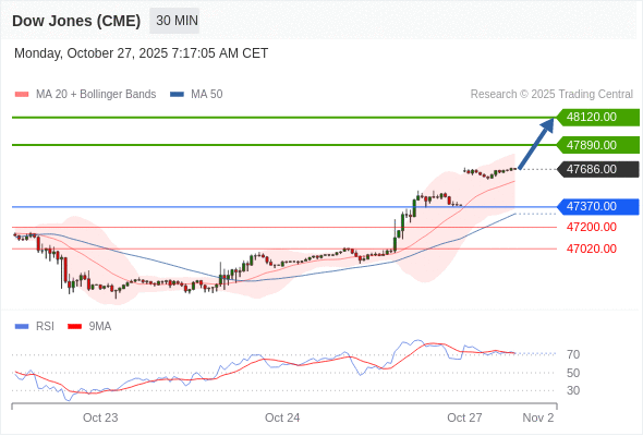在 47370.00 之上,看涨,目标价位为 47890.00 ,然后为 48120.00 。