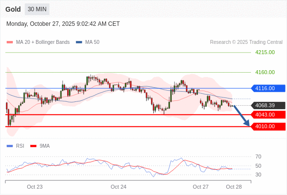 交易策略: 在 4116.00 之下,看跌,目标价位为 4043.00 ,然后为 4010.00 。