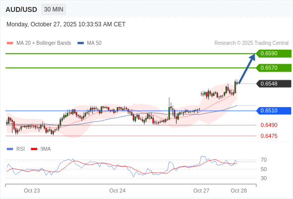在 0.6510 之上,看涨,目标价位为 0.6570 ,然后为 0.6590 。