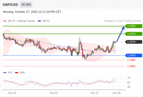 在 1.3300 之上,看涨,目标价位为 1.3370 ,然后为 1.3395 。