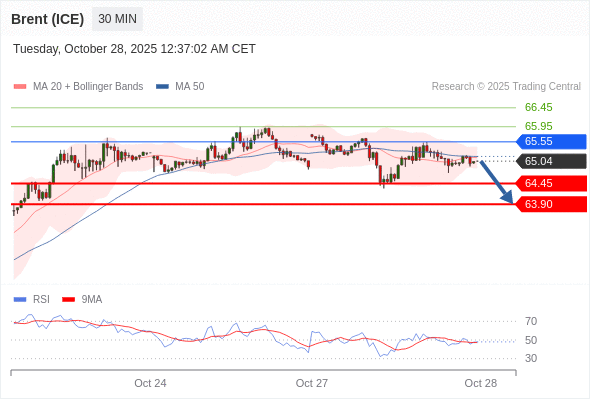 在 65.55 之下,看跌,目标价位为 64.45 ,然后为 63.90 。