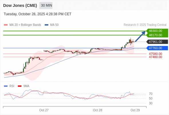 在 47760.00 之上,看涨,目标价位为 48170.00 ,然后为 48300.00 。