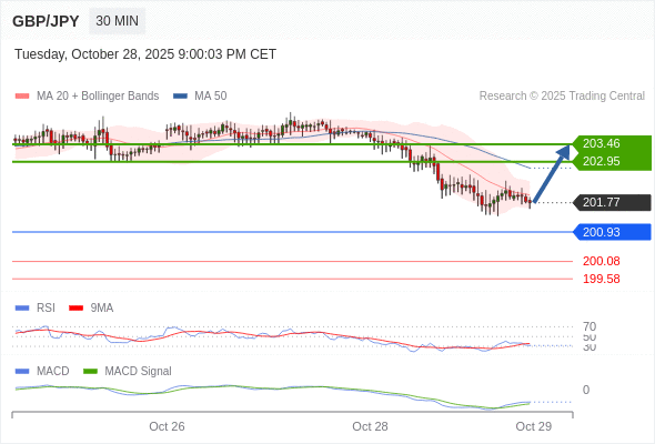 英镑/日元 当日内: 有上涨的可能,目标价位定在 203.46 。