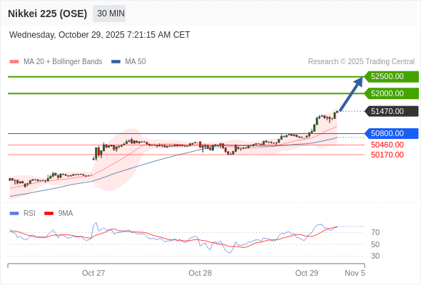 日经225股指期货 (OSE) 当日内: 目标位为52000.00。