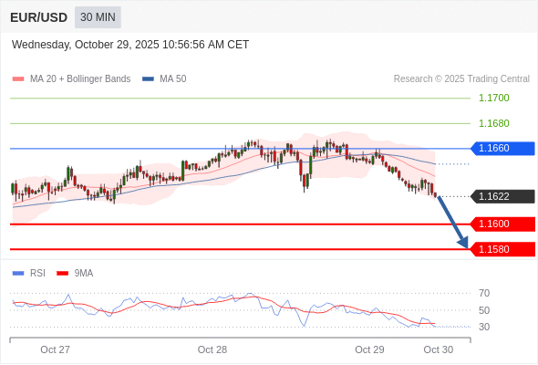 在 1.1660 之下,看跌,目标价位为 1.1600 ,然后为 1.1580 。