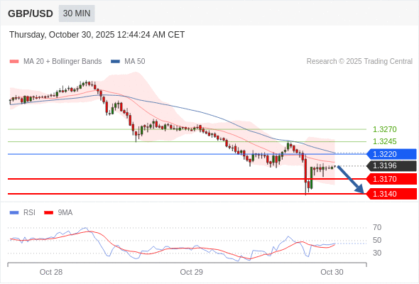 交易策略: 在 1.3220 之下,看跌,目标价位为 1.3170 ,然后为 1.3140 。