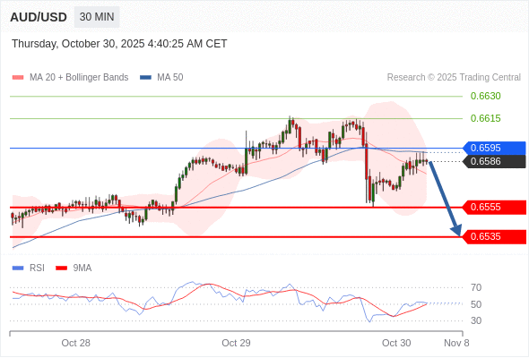 交易策略: 在 0.6595 之下,看跌,目标价位为 0.6555 ,然后为 0.6535 。