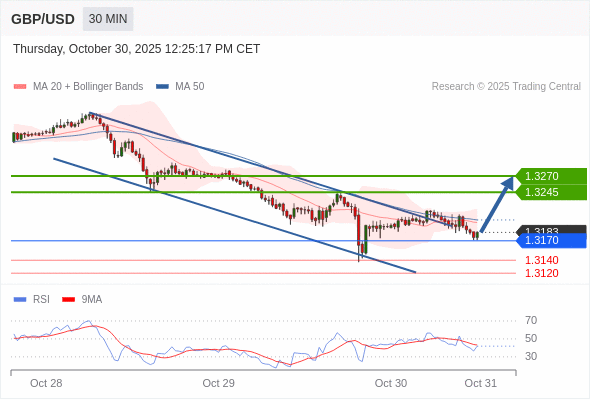在 1.3170 之上,看涨,目标价位为 1.3245 ,然后为 1.3270 。