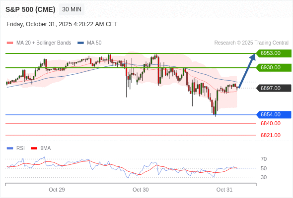 在 6854.00 之上,看涨,目标价位为 6930.00 ,然后为 6953.00 。