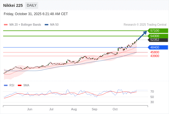 在 48400 之上,看涨,目标价位为 54300 ,然后为 57100 。
