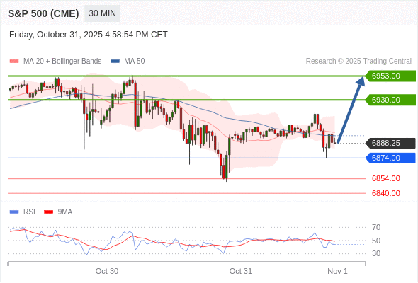 交易策略: 在 6874.00 之上,看涨,目标价位为 6930.00 ,然后为 6953.00 。