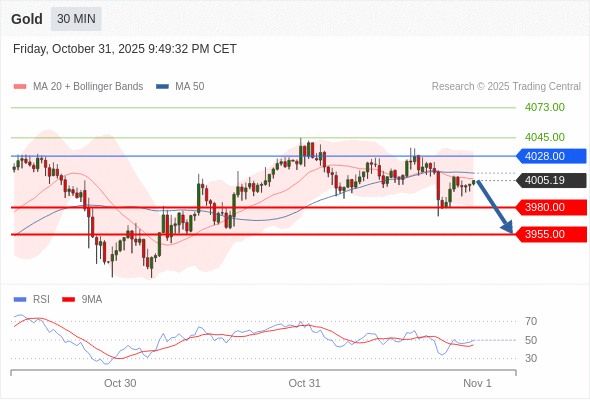 交易策略: 在 4028.00 之下,看跌,目标价位为 3980.00 ,然后为 3955.00 。