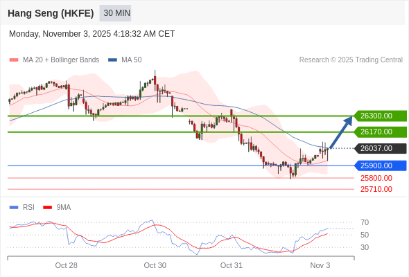交易策略: 在 25900.00 之上,看涨,目标价位为 26170.00 ,然后为 26300.00 。