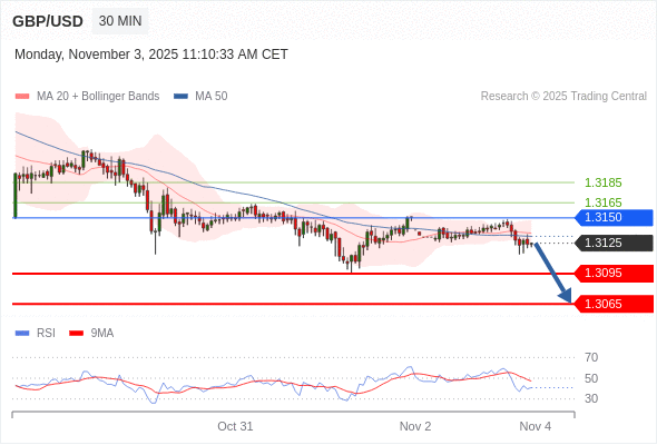 在 1.3150 之下,看跌,目标价位为 1.3095 ,然后为 1.3065 。