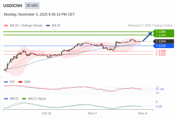 交易策略: 看涨,当 7.1215 为支撑位,目标定在7.1368。