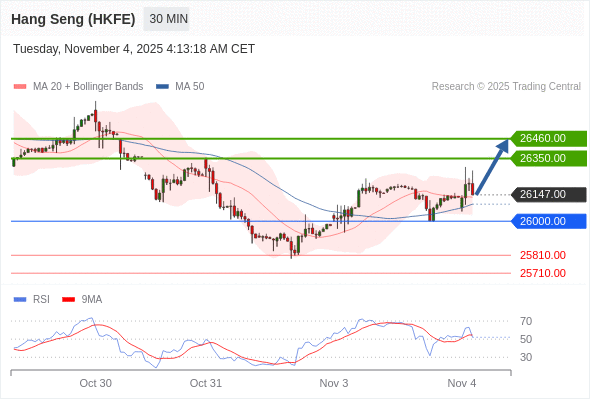 交易策略: 在 26000.00 之上,看涨,目标价位为 26350.00 ,然后为 26460.00 。