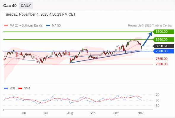在 7900.00 之上,看涨,目标价位为 8260.00 ,然后为 8500.00 。