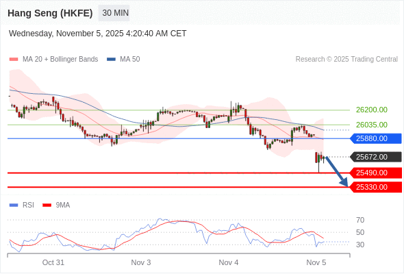 香港恒生指数期货 当日内: 短期关键阻力位在25880.00。