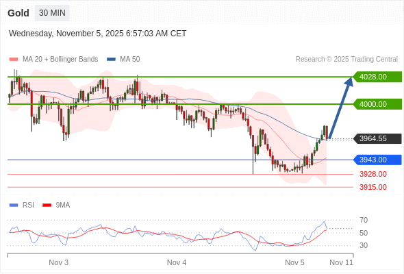 在 3943.00 之上,看涨,目标价位为 4000.00 ,然后为 4028.00 。
